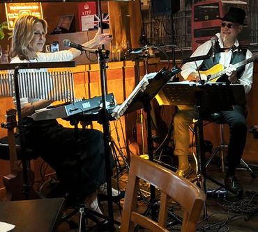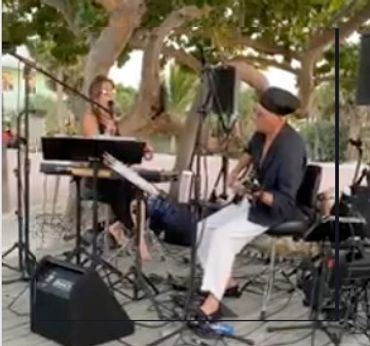 We are a husband  and wife duo who performs an  extensive list of popular music, from classics  to current covers, as  well as our own original songs.  All of our music is 100% live ... we do  not use music tracks or any pre-recorded music of any kind.  We have a  mini-live recording studio setup using a looping method, the  same as  made famous by musicians like Ed Sheeran, and many others.  We also use a  multitude of various instruments, to create our live, full band sound, on  each and every song.  This provides your guests with a  live, multi-instrumental  performance, and a show that is as  entertaining to watch as it is to listen and dance to.  Watch us build every song, spontaneously, to create a full band sound.